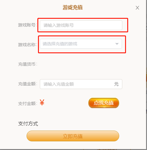 1,首页选择游戏,点击立即充值